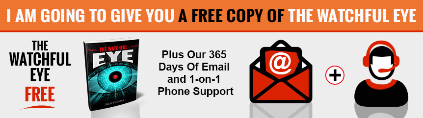 Go ahead click the green button and claim your free copy of The Watchful Eye and 365 days of email and 1-on-1 phone support absolutely free. There are no catches, no hidden billing.
